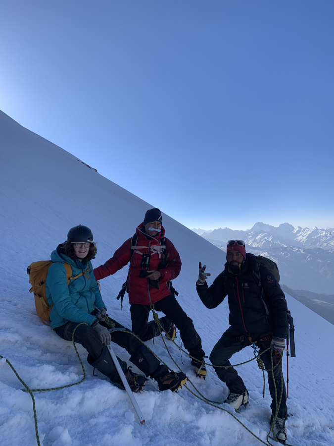the summit as we roped up as it gets steeper. From the col a sharp three-hour ascent